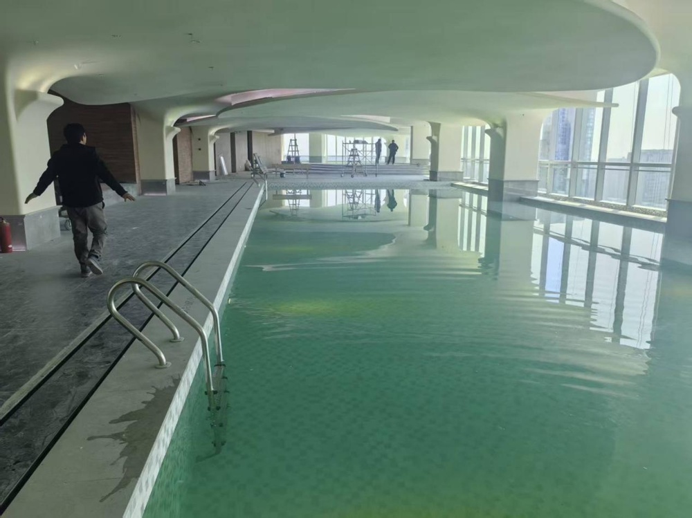 D'Héich-Héicht Fräizäitberäich vum Hotel Haiser en Indoor konstant-Temperatur Schwämm kombinéiert mat engem Kanner Fräizäit- Pool (Kand-frëndlech), läit op der selwechter héich Stack wéi de Turnstonnen, an ass gratis fir Gäscht am Haus.